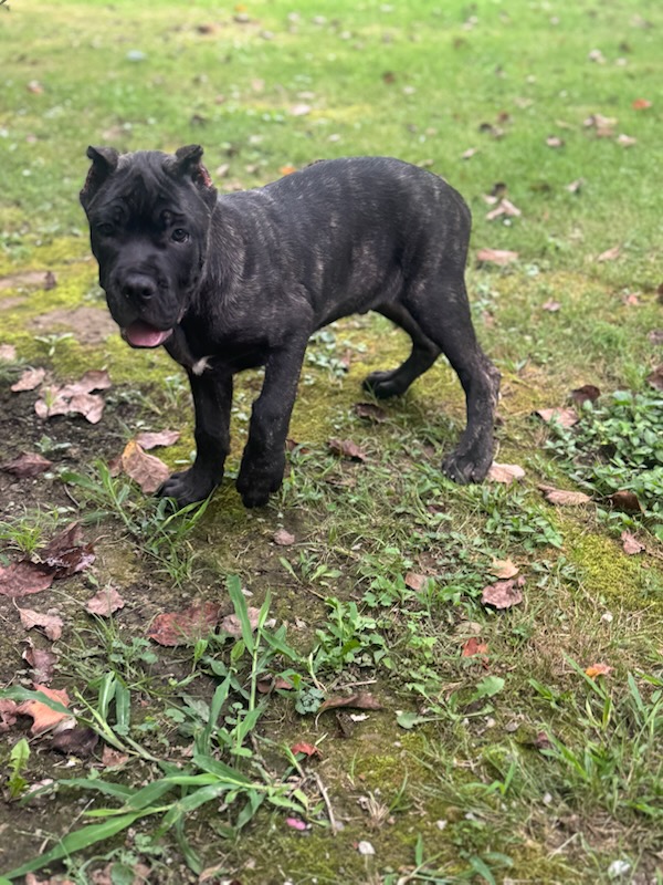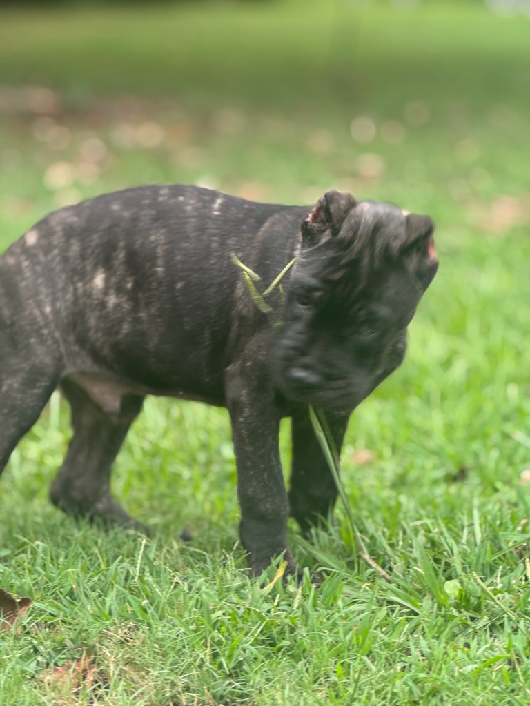 Meet the second available pup from the elite Koda & Saber bloodline at Middle Tennessee Cane Corso—a striking blend of athleticism, alertness, and calm confidence. This pup stands out with a bold, observant gaze and a naturally inquisitive spirit, already showing signs of high trainability and a steady, even temperament. With Koda’s poised demeanor and Saber’s fearless energy in their lineage, this pup is ideal for someone seeking a devoted companion with a protective edge. Whether destined for family life, training, or guarding, this Cane Corso is ready to grow into a loyal and impressive presence.